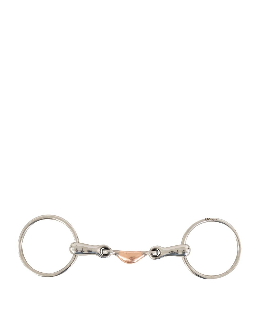 Doppelt gebrochen, Edelstahl mit Zwischenstück aus Messing, Ringe 65 mm. Gebissdicke von 14 mm.