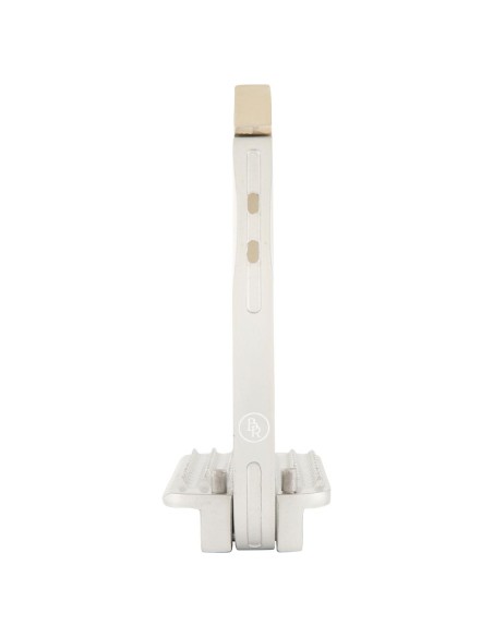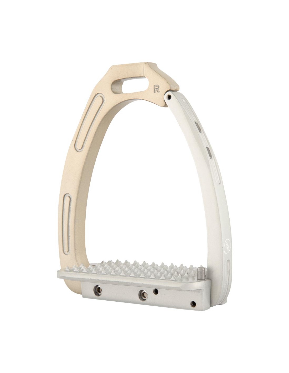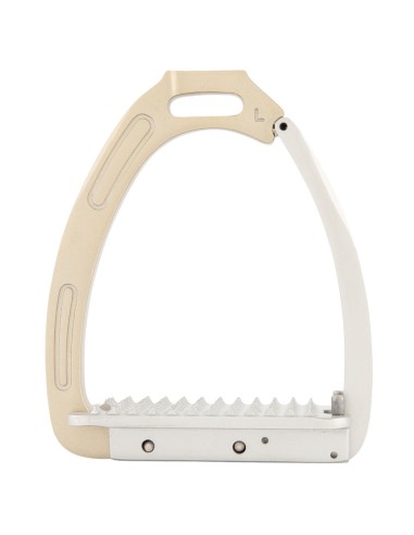Dieser Steigbügel aus galvanisiertem Aluminium mit Pulverbeschichtung ist zur Verbesserung der Stabilität auf der Innenseite mit Edelstahl verstärkt. Der Bügel verfügt über einen magnetischen Sicherheitsmechanismus. Das Gewicht des Reiters sorgt dafür, dass sich der Bügel bei einem Sturz öffnet. So bleibt der Fuß nicht im Steigbügel hängen. Sobald der Fuß den Bügel verlassen hat, schließt sich der Bügel automatisch. Die leicht gebogene Steigbügelriemenaufhängung sorgt für eine gute Bügelposition, wodurch der Fuß in der richtigen Position gehalten wird. Dies bietet dem Reiter mehr Stabilität und verbessert die Beinhaltung.