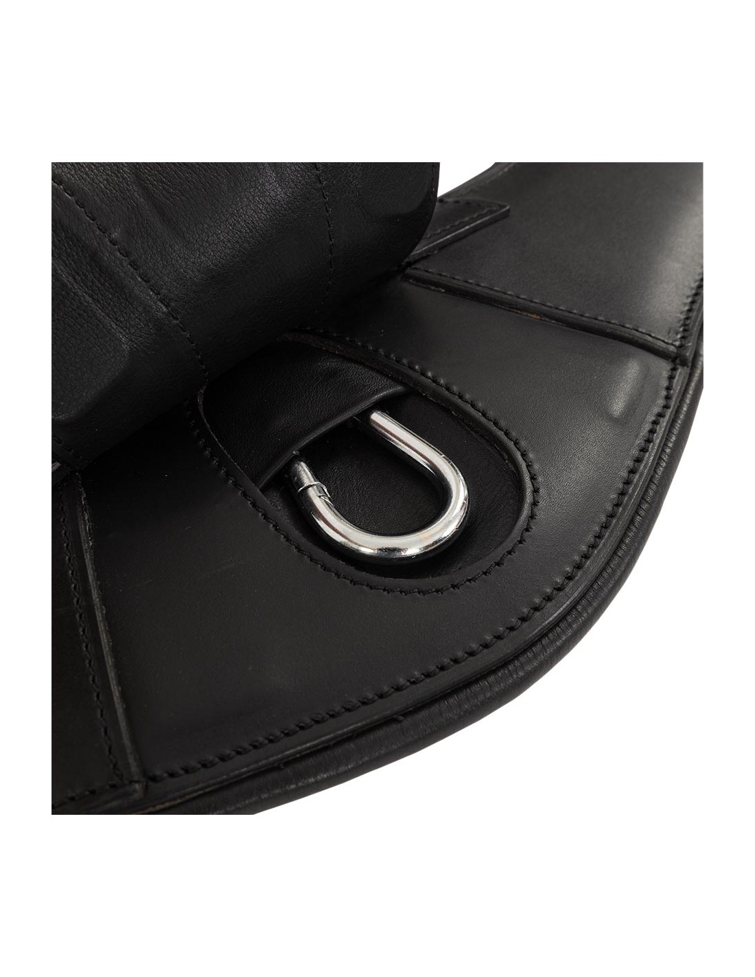 BR Sattelgurt Bakewell besteht aus hochwertigem Leder, das weich ist, sich angenehm anfühlt und lange hält. Auffällig an diesem Sattelgurt ist die Lasche, die den Karabinerhaken in der Mitte abdeckt. Diese Lasche schließt magnetisch.