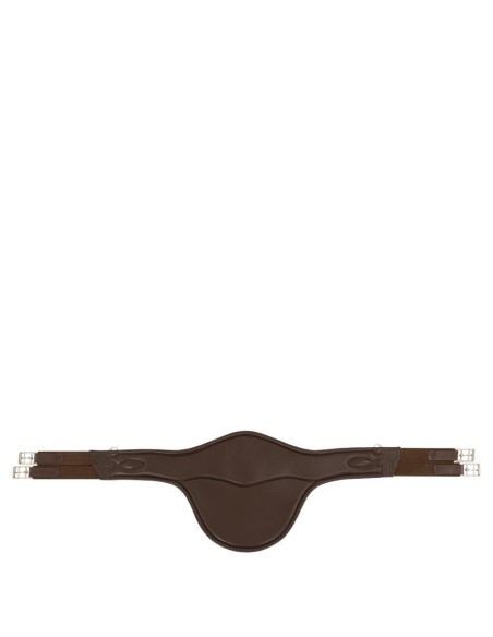 Der Stollenschutz bietet optimalen Schutz für den Bauch des Pferdes beim Springen und das anatomische Design des Gurtes bietet dem Pferd optimale Bewegungsfreiheit. Der Gurt verfügt beidseitig über Elastikeinsätze und elegante Rollschnallen aus Edelstahl. Die elastischen Einsätze bieten zusätzlichen Komfort und erleichtern das Nachgurten. In der Mitte befindet sich ein Karabinerhaken und an den Seiten befinden sich zwei kleine D-Ringe zur Befestigung von Hilfszügeln. Die verspielten Ziernähte runden den Sattelgurt elegant ab.