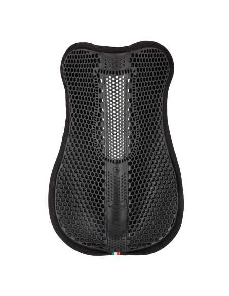 Dieses anatomisch geformte Gelpad besteht oben aus einem Wabenprofil aus Soft-Gel und hat auf der Unterseite ein Mikrofaserfutter. Am Widerrist ist das Pad nicht bezogen, zudem wurde hier Raum für die Wirbelsäule frei gelassen, sodass die Luft hier frei über den Pferderücken zirkulieren kann. Das Wabenprofil aus Gel wirkt stoßdämpfend und stabilisiert den Sattel. Das therapeutische Soft-Gel von BR hat ausgezeichnete rutschhemmende Eigenschaften, unterstützt kein Bakterienwachstum und ist nicht giftig. Das Pad kann daher direkt auf dem Pferderücken benutzt werden, aber auf Wunsch auch zwischen Sattel und Schabracke. BR Soft-Gel-Pads passen unter alle Sättel und sind maschinenwaschbar bei 30 °C.