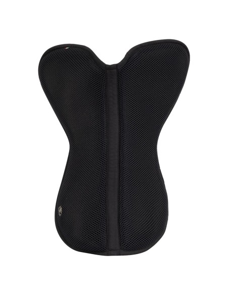 Das 3D Spacer ermöglicht eine gleichmäßige Verteilung des Gewichts des Reiters und verhindert Wärmestaus. Außerdem lässt es eine kontinuierliche Luftzirkulation zu und sorgt es für eine schnellere Schweißabsorption und effiziente Verdampfung. Der Memory-Schaum wirkt stoßdämpfend, eliminiert Reibung und sorgt für eine gleichmäßige Druckverteilung. Die spezielle Form der Sattelunterlage entlastet den Widerristbereich.