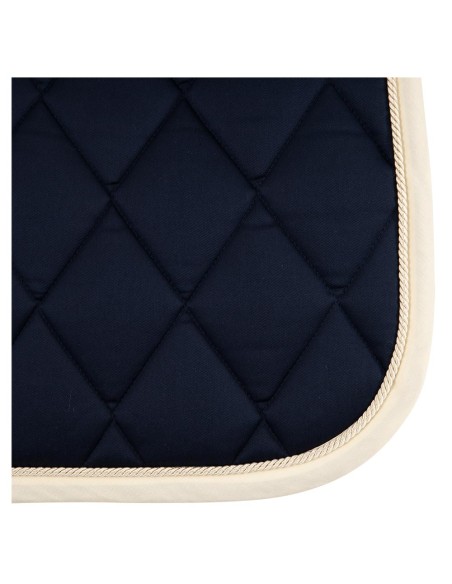 Die Schabracke ist mit einer oder zwei Zierkordeln dekoriert und es enthält eine Gurtstrupfenbefestigung mit Klettverschluss.