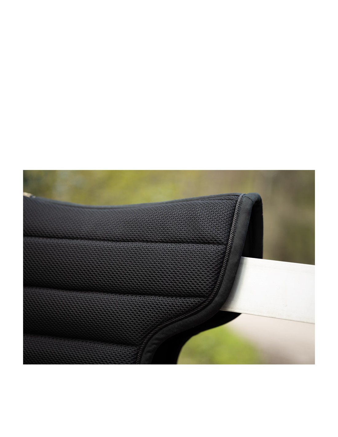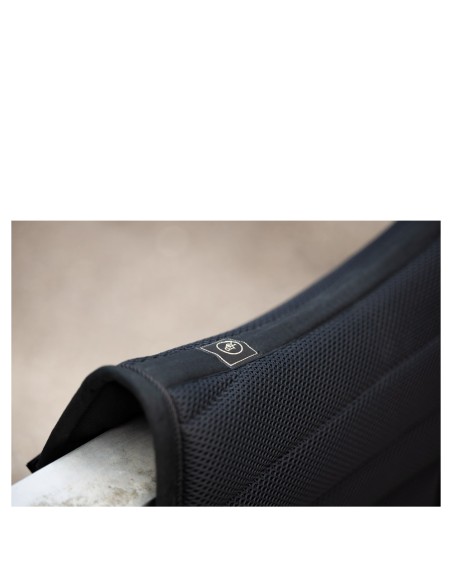 Die sattelförmige Schabracke hat eine weiche Füllung aus 300 g Polypadding und 10 mm Schaumstoff für eine gute Stoßdämpfung. Das Schabracke ist mit einem feuchtigkeitsableitenden, atmungsaktiven, elastischen Futter mit einem rutschfesten ananasförmigen Muster gefüttert. Darüber hinaus ist die Sattelunterlage mit Sattelschlaufen und Gurtschlaufen mit Klettverschluss ausgestattet und mit einem eleganten Kordelbesatz und einer Stickerei auf der Gurtschlaufe versehen.
