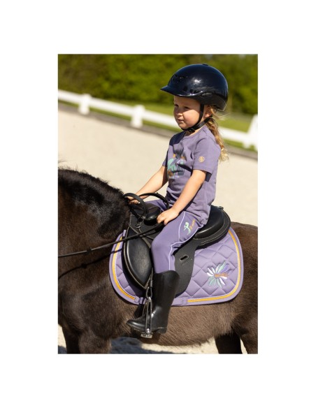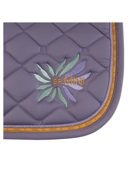 Diese anatomisch geformte Schabracke ist aus feinem Twill gefertigt und bietet dem Pferd großen Komfort. Das feuchtigkeitsregulierende Cool Plus Futter sorgt dafür, dass der Pferderücken so trocken wie möglich bleibt. Die Poly-Polsterung in Kombination mit Schaumstoff bietet eine gute Stoßdämpfung und ein angenehmes Tragegefühl. Die Schabracke ist mit Gurtstrupfenbefestigung und kurzer Sattelgurtbefestigung ausgestattet. Das Finish mit einer bunten Kontrastpasppelierung, einer Kordelbindung mit silbernem Glitzer und dem BR-Mini Artwork sorgt für einen verspielten Look.
