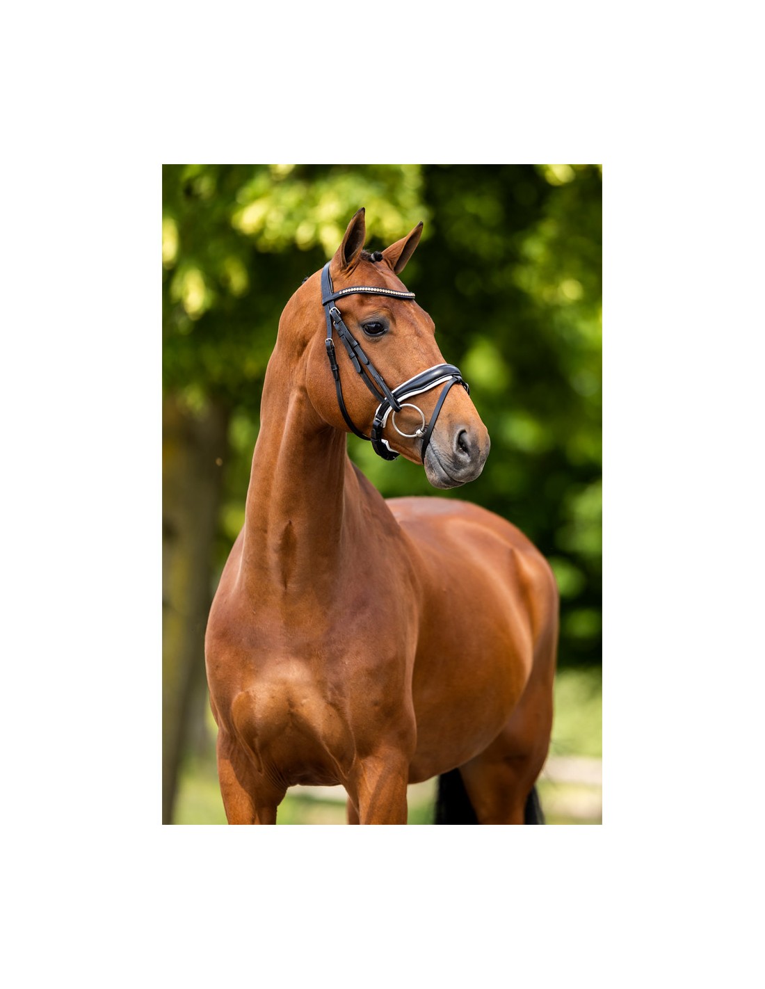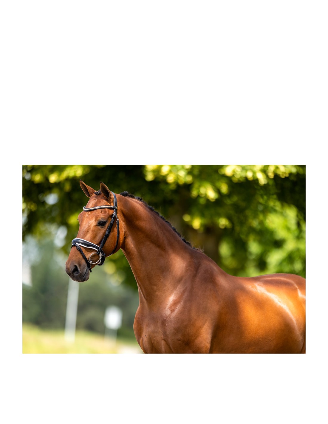 Das Genickstück und der Anbindenasenriemen sind weich gepolstert für optimalen Komfort und anatomisch geformt für eine gute Druckverteilung und Passform. Das Stirnband ist mit einer Kette aus luxuriösen roségoldenen Stellux™-Kristallen besetzt. Die Stellux™-Kristalle sind vollständig geklemmt und dadurch besonders sicher.