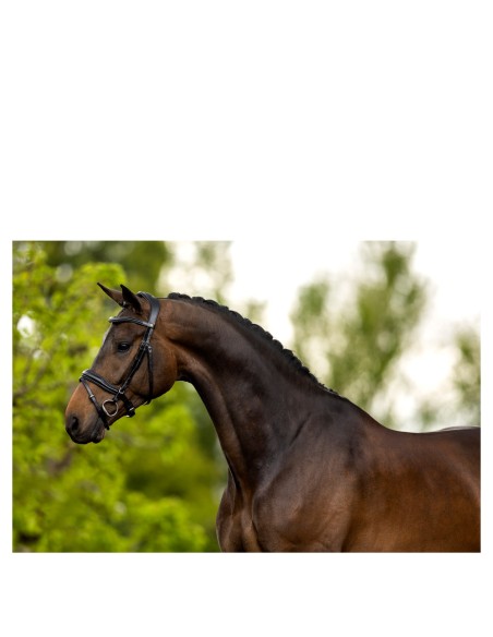 Das Genickstück “Anatomic Fit” (art. 189048) ist anatomisch geformt und sehr weich unterlegt. Dies ermöglicht einen guten Schnitt, eine bessere Druckverteilung auf dem Kopf des Pferdes und sehr viel Komfort. Der anatomische, kombinierte Nasenriemen ist 30 mm breit in der Mitte und 20 mm breit an den Seiten. Auch der Nasenriemen enthält ein weiches Padding für optimalen Komfort. Der Sperriem ist völlig abnehmbar dank der T-förmigen, ausnehmbaren Sperriemenschlaufe.