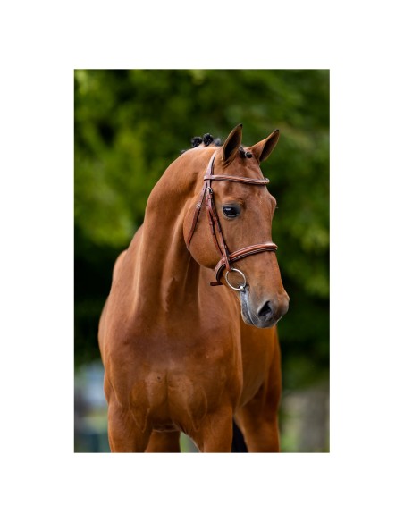 Diese symmetrische Trense aus hochwertigem europäischem Leder eignet sich besonders für Hunter. Die Trense hat ein weich gepolstertes Genickstück. Das geschwungene Stirnband ist rund bombiert, weich gepolstert und mit cremefarbenen Zierstickereien verziert. Der Kehlriemen ist beidseitig verstellbar. Die Backenstücke sind mit Zaumhaken versehen. Die Trense hat ein englisches Reithalfter (ca. 3 cm) mit cremefarbenen Stickereien. Dieses Reithalfter ist rund bombiert und weich gepolstert. Die Trense ist mit glänzenden silberfarbenen Beschlägen aus verchromtem Messing ausgerüstet. Die passenden BR Hunter-Lederzügel, Artikel 203051, sind separat erhältlich.