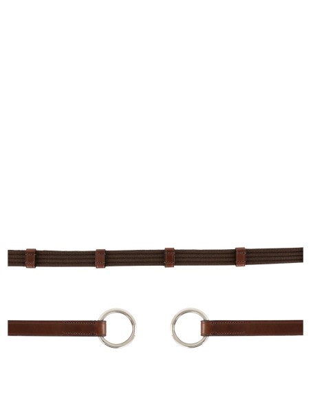 Dieser BR-Gurtzügel ist 19 mm breit und hat 7 Lederstege, die für einen guten Halt eng beieinander liegen. An den Enden befinden sich starke Ringe mit einem Durchmesser von 30 mm. Der Zügel ist mit hochwertigem Polo-Leder veredelt, das lange hält und geschmeidig ist.