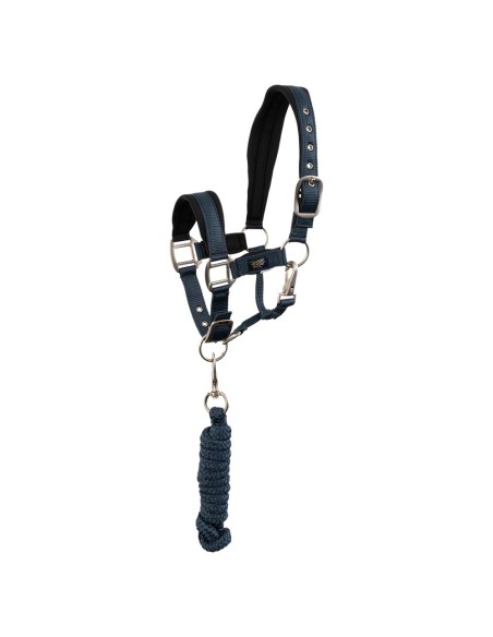 Dieses niedliche Halfter mit Anbindestrick bietet Ihrem Pferd oder Pony dank seines weichen Neoprenfutters optimalen Komfort. Außerdem kann das Halfter am Genickstück, am Nasenriemen und an den Backenstücken so eingestellt werden, dass das Halfter perfekt sitzt. Der passende runde geflochtene Anbindestrick ist mit einem Karabinerhaken ausgestattet. Die Schnallen mit mattsilbernem Finish sind robust und verleihen dem Halfter eine elegante Note.