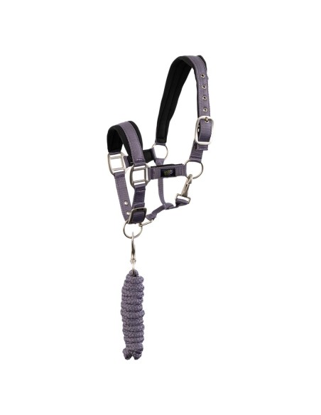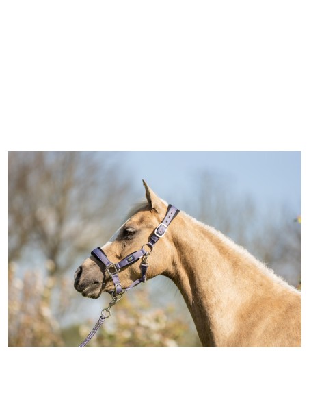 Dieses niedliche Halfter mit Anbindestrick bietet Ihrem Pferd oder Pony dank seines weichen Neoprenfutters optimalen Komfort. Außerdem kann das Halfter am Genickstück, am Nasenriemen und an den Backenstücken so eingestellt werden, dass das Halfter perfekt sitzt. Der passende runde geflochtene Anbindestrick ist mit einem Karabinerhaken ausgestattet. Die Schnallen mit mattsilbernem Finish sind robust und verleihen dem Halfter eine elegante Note.