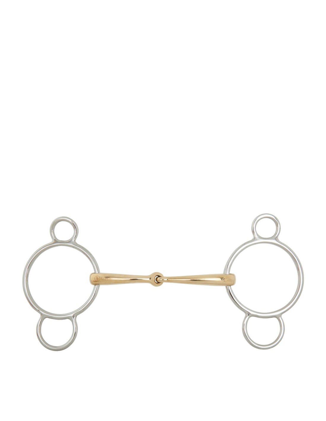 Diese qualitativ hochwertige, einfach gebrochene 3-Ring-Wassertrense ist aus massivem Cuprigan mit Edelstahlringen gefertigt. Cuprigan ist eine Legierung aus 89% Kupfer, 7% Aluminium, 3% Eisen und 1% Zink. Der Oxidationsprozess des Materials ergibt einen angenehmen Geruch und Geschmack. Die anatomische Form folgt der Form des Pferdemauls, was eine sanfte und gleichmäßige Druckverteilung ermöglicht. Die Kombination aus der Form und der einzigartigen Zusammensetzung von Cuprigan regt den Kauprozess und die Speichelbildung an, wodurch eine angenehme Verbindung mit dem empfindlichen Pferdemaul entstehen kann. Das Gebiss hat eine normale Wirkung auf das Maul und eignet sich für Pferde, die hart im Maul sind. Das Mundstück ist 16 mm stark und die mittleren Gebissringe haben einen Durchmesser von 70 mm.