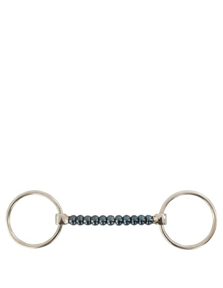 Diese ungebrochene Wassertrense zeichnet sich durch das Mundstück aus, das aus Cherry Roller mit einer Beschichtung aus Süßeisen (Sweet Iron) besteht. Die bewegliche Cherry Roller veranlassen Ihr Pferd, die Rollen zu greifen und mit ihnen zu spielen. Dies sorgt nicht nur für Entspannung, sondern auch für eine natürliche Speichelproduktion und eine gute Akzeptanz des Gebisses. Darüber hinaus erschweren die beweglichen Rollen das Greifen des Gebisses durch das Pferd.