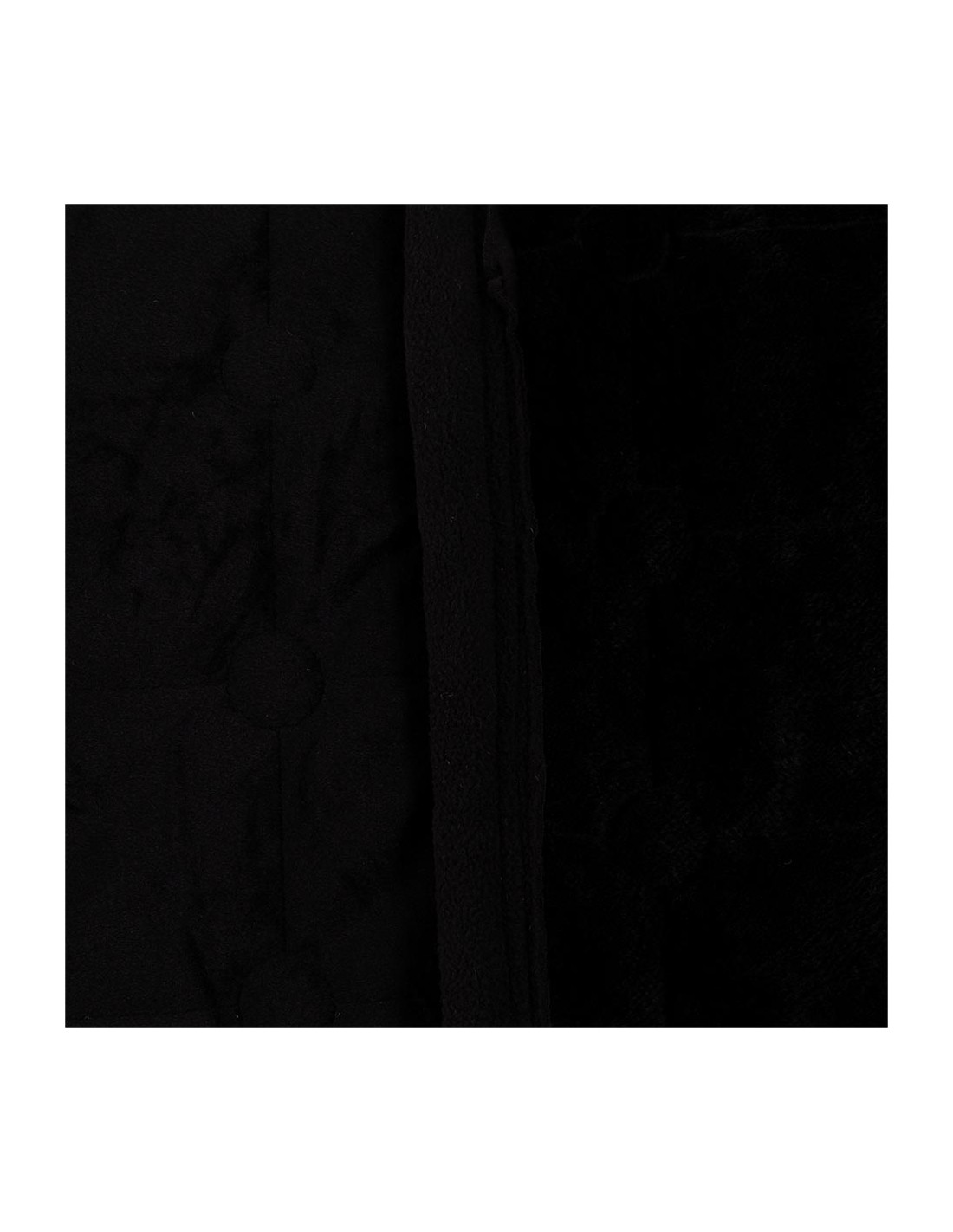 Die Decke hat eine elegante Samtaußenseite mit einer Karosteppung mit Kreisen an den Ecken. Die Decke ist edel mit einem schönen Kordelbesatz und einem Markenbesatz mit CLX versehen.