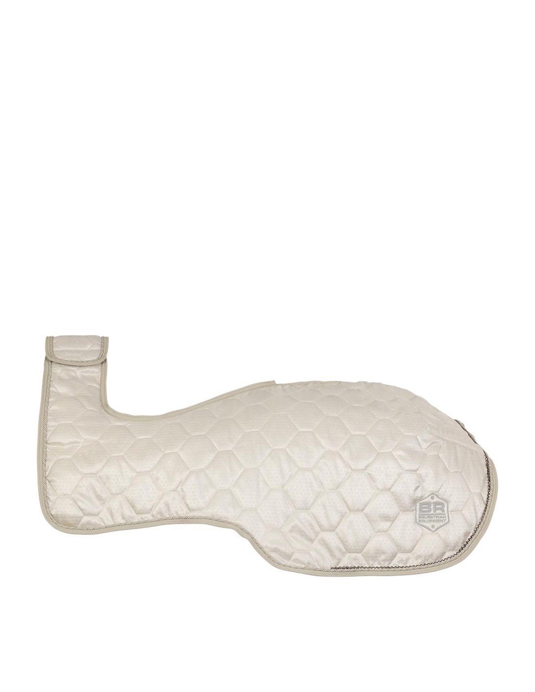 Das Futter aus Seehundfell bietet viel Wärme und ist perfekt für empfindliche Pferdehaut. Die Ausreitdecke ist stilvoll mit einer glänzenden Kordelpaspel, einer neutralen Paspel und Strasssteinen veredelt. Ein schönes Sechseckmuster spiegelt sich in der Steppung an der Außenseite und im Innenfutter wider. Die Decke wird mit einem robusten Klettverschluss verschlossen und ist mit einem Schweifriemen ausgestattet.