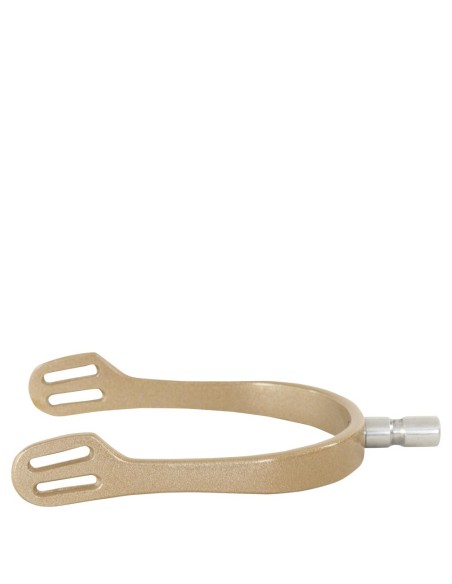 Diese robusten und eleganten Sporen sind aus Aluminium gefertigt und halten dank der schützenden Pulverbeschichtung lange. Das Set enthält ein Paar Radsporen und zwei Paare Knopfsporen in unterschiedlichen Stärken. Das Rad des Radsporenpaares ist sehr glatt für eine weichere Wirkung, was es für empfindliche Pferdehaut geeignet macht. Die Sporenenden können hinein- und herausgedreht werden (dazu benötigen Sie möglicherweise eine starke Person oder Werkzeuge).