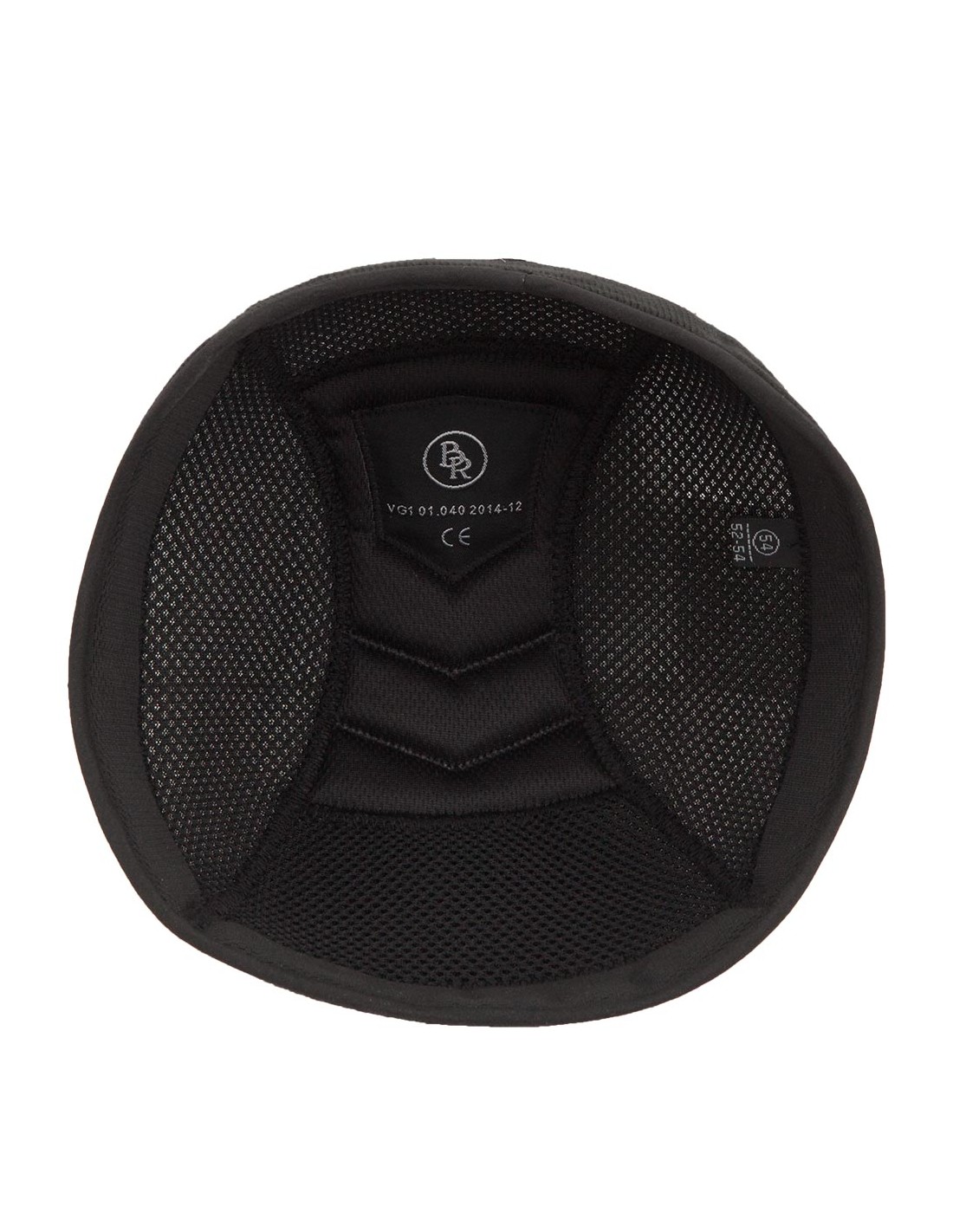 Der BR Reithelm Sigma Carbon VG1 verfügt über eine leichte Schale aus starkem ABS-Material, die mit einer Carbonstruktur verzierte Oberseite verleiht dem Helm ein elegantes Aussehen. Dieser Rand ist mit zwölf Lüftungsöffnungen versehen, die gemeinsam mit dem Innenfutter für eine gute Lüftung und Feuchtigkeitsregulierung sorgen. Das Innenfutter von Cooldry kombiniert mit Mesh wirkt abkühlend und trocknet schnell. Das Futter ist komplett herausnehmbar und ist maschinenwaschbar (40°C). Der Helm ist mit einer verstellbaren 6-Punkt-Beriemung aus stilvollem Kunstleder ausgerüstet. Die Beriemung verfügt über einen Schnellverschluss und einen weichen Kinnschutz aus Cooldry-Material. Er wird mit drei verschieden großen Futtervarianten geliefert. So kann einfach eine perfekte Passform erreicht werden. Der Helm erfüllt die Sicherheitsnorm EN1384-2023.