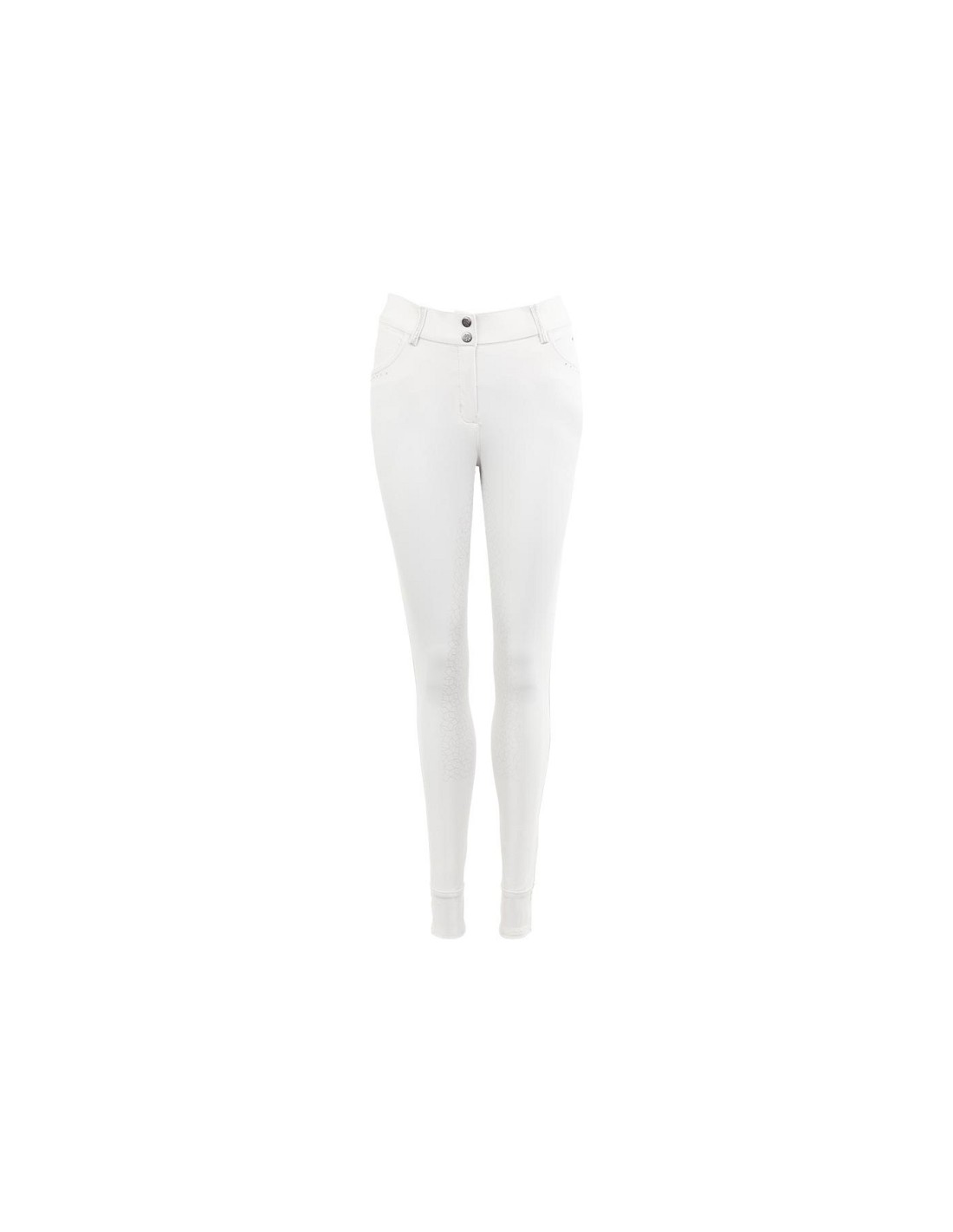 Die Brighton Reithose ist mit silberglänzenden Elementen wie Kontrastpaspeln und Strass an den Taschen versehen. Das 4-Wege-Stretchmaterial, der elastische Bund und der elastische Beinverschluss sorgen für optimalen Komfort und Bewegungsfreiheit. Der Silikonbesatz mit grafischem Muster sorgt für einen stabilen Sitz.
