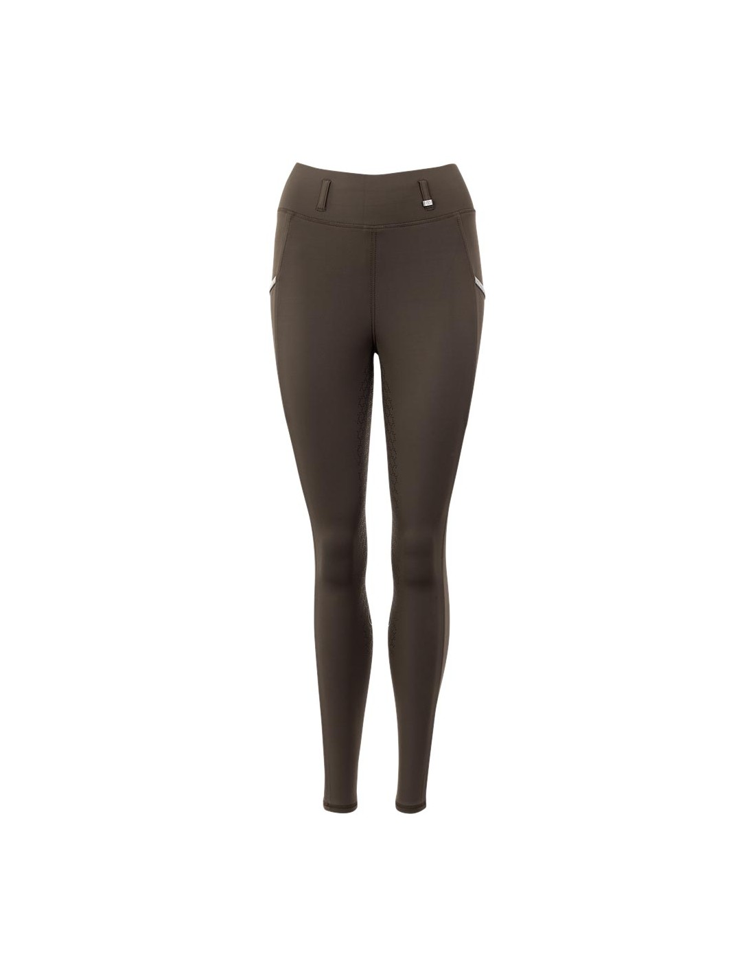 Dank des 4-Wege-Stretch-Gewebes in dieser Reitlegging ist der Stoff in vier Richtungen dehnbar. Dadurch schmiegt sich die Reithose eng an, was optimale Bewegungsfreiheit gewährleistet. Darüber hinaus ist das Material atmungsaktiv und trocknet schnell für hohen Tragekomfort. Auf der Vorderseite befinden sich zwei tiefe Taschen, in denen Sie Ihr Handy verstauen können. Die Legging hat einen elastischen Bund mit Gürtelschlaufen und einen elastischen Beinverschluss. Der Silikondruck auf dem Sitz hat ein Punktmuster und bietet zusätzlichen Halt und einen stabilen Sitz. Das Glitzerband an den Taschen rundet diese Reitlegging elegant ab.