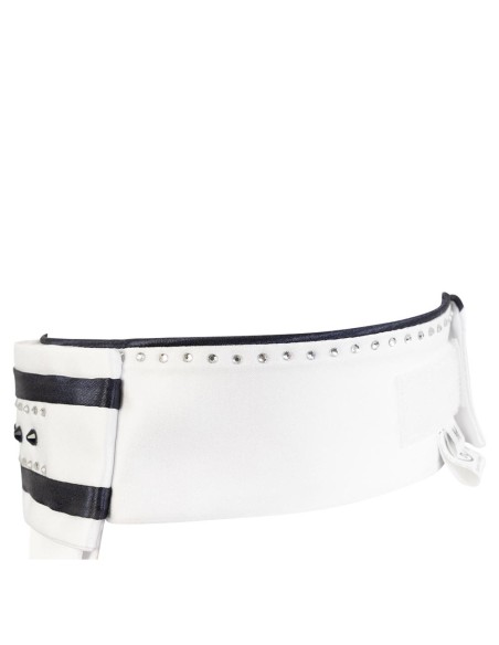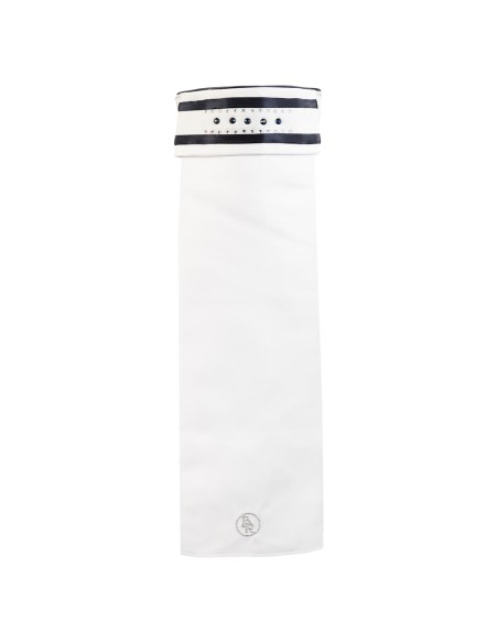 Das schöne, elegante Plastron Maratea besteht aus Polyester-Satin und ist dezent mit einem Muster aus kleinen und größeren Strasssteinen auf der Vorderseite des Kragens und einer Reihe von Strasssteinen um den Kragen veredelt. Unten ist das Plastron mit einer silbernen BR-Stickerei versehen.