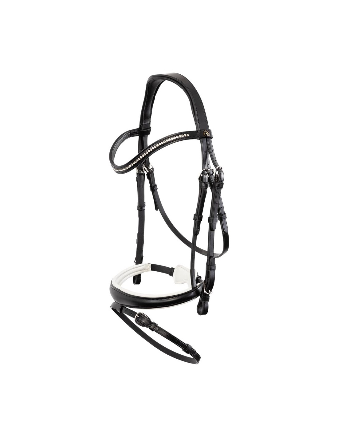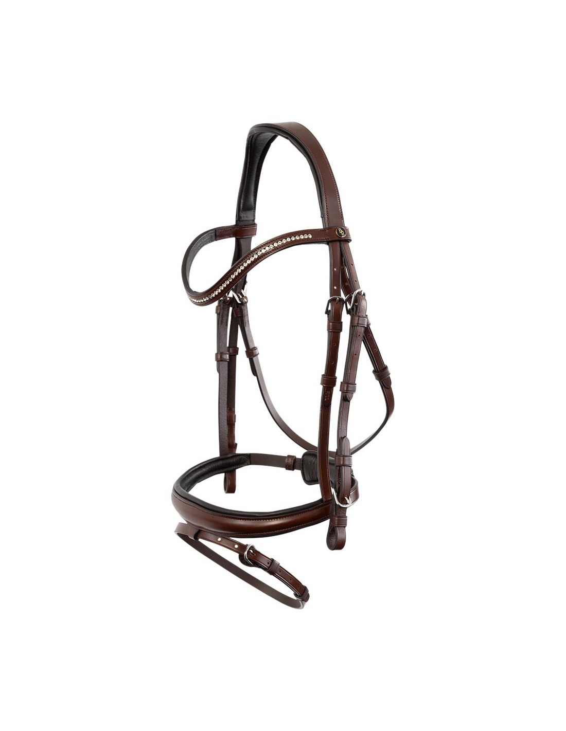 Das Stirnband ist mit einer Kette aus luxuriösen, glänzenden Stellux™-Kristallen besetzt. Die Stellux™-Kristalle sind vollständig geklemmt und dadurch besonders sicher. Der Sperriemen enthält einen Schnallenschutz und der Nasenriemen ist mit einem wunderbar weichen Kinnschutz ausgestattet, um die Haut des Pferdes zu schützen.