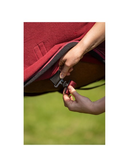 Diese elegante Fleecedecke ist wunderbar weich und eignet sich für den Einsatz während des Transports und nach dem Training oder nach dem Putzen, damit Ihr Pferd nicht zu schnell abkühlt. Der Widerristschutz aus Kunstfell fühlt sich angenehm auf der Haut des Pferdes an und verhindert Scheuern. Die Decke ist mit zwei schönen Paspeln in der Farbe der Decke und einer kontrastierenden Paspelierung verziert.