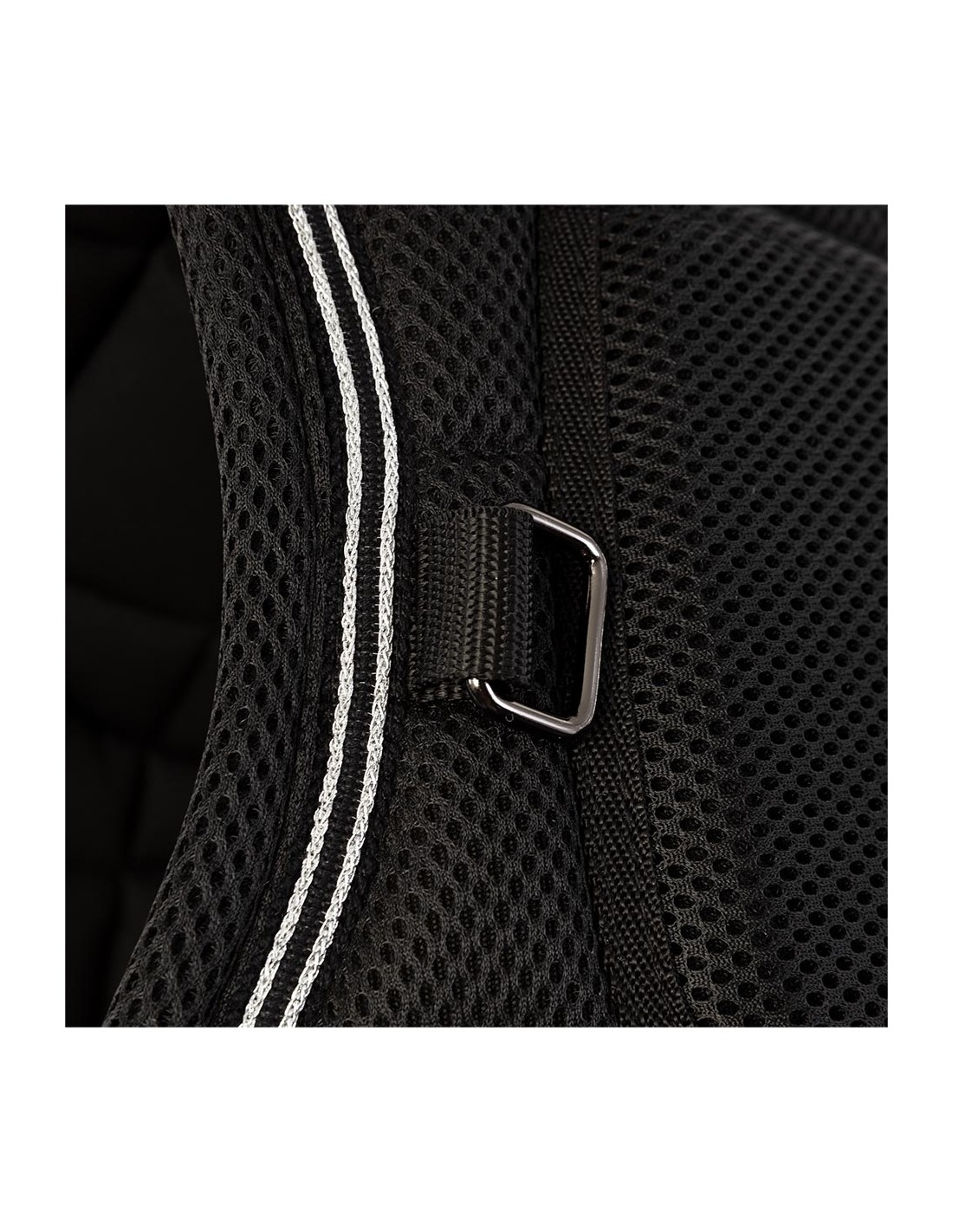 Die Schabracke hat eine quadratische Steppung und ist mit kurzen, abnehmbaren Gurtstrupfenbefestigungen mit Klettverschluss und Gurtschlaufen mit Klettverschluss ausgestattet. Die doppelte silberne Paspelierung verleiht der Schabracke einen schicken Look.