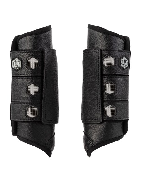 Der Protektor ist mit gehärteten Teilen und einer robusten PU-Schicht an den Stellen ausgestattet, an denen das Pferdebein zusätzlichen Schutz benötigt. Das Innenfutter ist stoßdämpfend und bietet optimalen Schutz. Das robuste, doppelte Klettverschluss-System sorgt für zusätzliche Festigkeit und verhindert, dass die Protektoren herunterrutschen.
