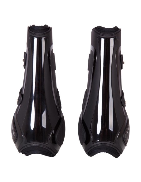 Die anatomisch geformte Polyurethan-Außenseite schützt das Pferdebein optimal. Die Innenseite ist mit 5 mm stoßdämpfend Neopren ausgekleidet. Die Schnellverschlüsse mit Elastik-Einsatz lassen sich einfach fixieren und sind in drei Positionen verstellbar.