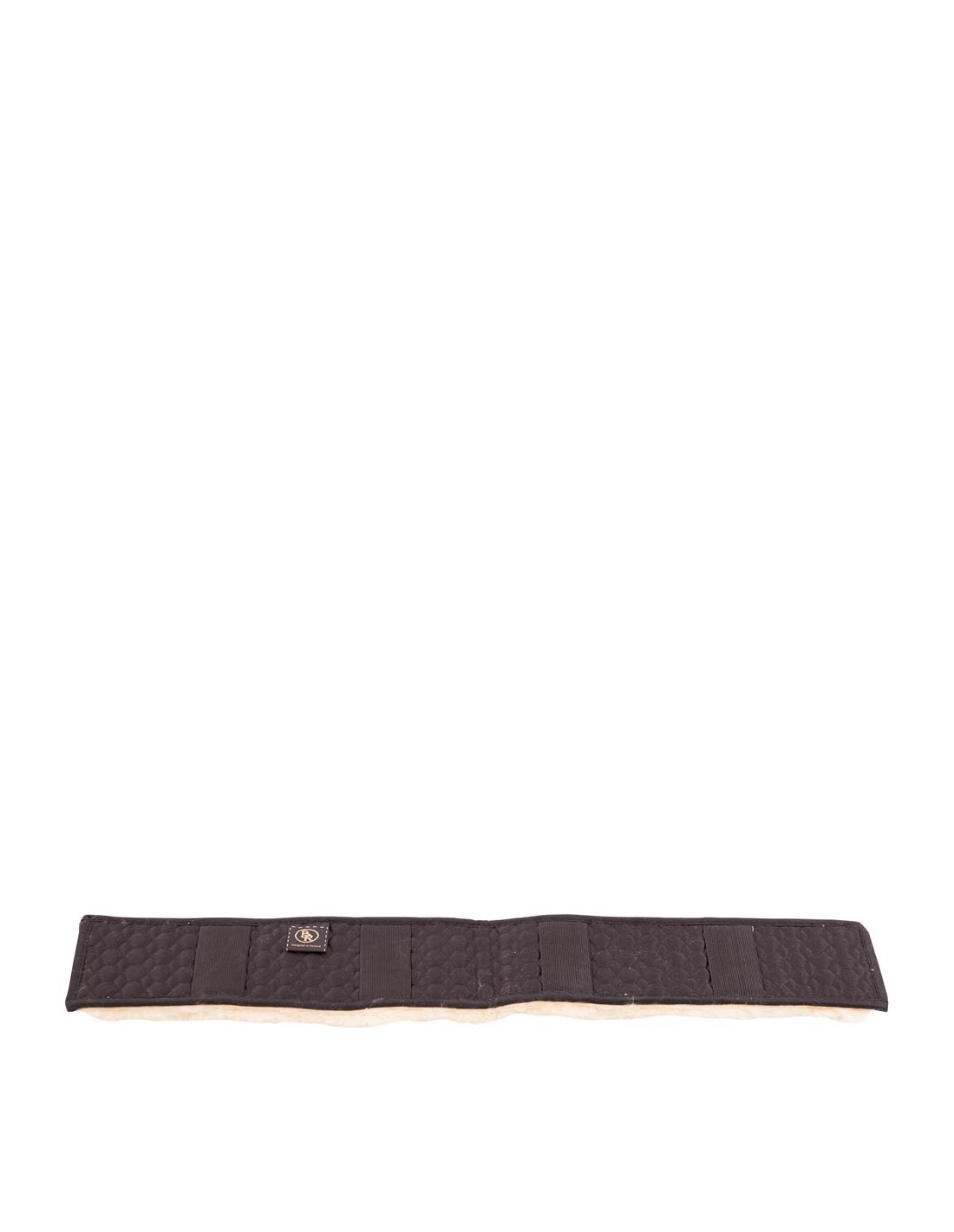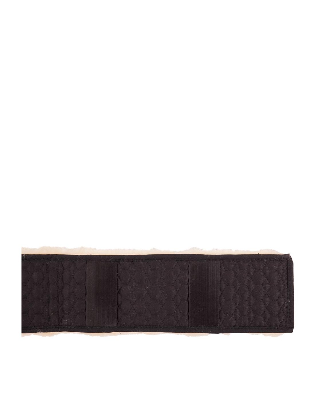 Eine Seite aus natürlichen Lammfell schützt die Haut des Pferdes, die andere Seite hat elastische Schlaufen und lässt sich so einfach am Gurt befestigen.