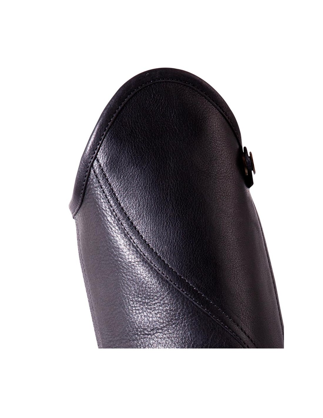 Sportliche Mini Chaps aus geschmeidigem Rindsleder. Entlang dem YKK Reißverschluss sorgt ein Elastikeinsatz für eine perfekte Passform. Der Reißverschluss schließt von unten nach oben. Mit Lederriegel mit Stretchzug und Druckknopf zur Fixierung des Reißverschlusses unten und oben. Die Mini Chaps sind ausgestattet mit einem seitlichem Schaftbogen von 5 cm Höhe. Der Einsatz unter dem Bogen hat eine feine Narbenstruktur. Der elastische Fußsteg ist mit Leder verstärkt. Die BR Mini Chaps können kombiniert werden mit den BR Jodhpur-Stiefeletten und aus diesem Grund sind sie eine bequeme und stilvolle Alternative zum Reitstiefel.