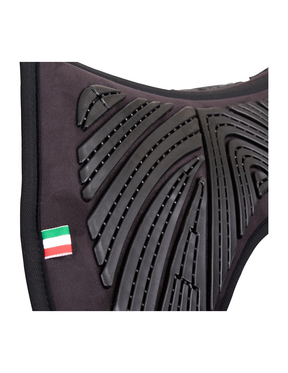 This anatomically shaped half pad made of antibacterial synthetic suede if filled with memory foam and features a soft gel profile. The combination of soft gel and memory foam distributes the weight of saddle and rider very evenly across the horse's back. This reduces the risk of pressure on the spine and withers. Memory foam provides excellent shock-absorption. The material reacts to body heat and as result, it adapts perfectly to the contours of the horses back and prevents rubbing. The gel stabilizes the saddle and gives the horse more freedom of movement. The pad fits under all saddles and can be used directly on the horses back or between saddle and saddle pad. Washable at 30°C.