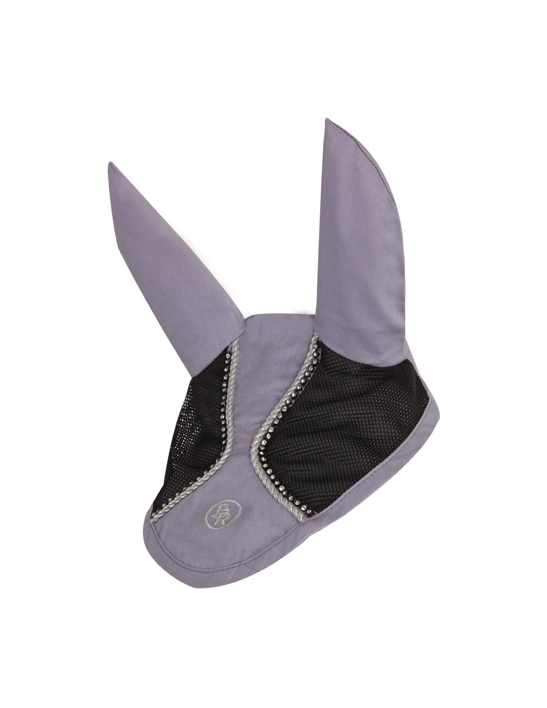Ear bonnet made of poly cotton with inserts of polyester mesh for extra ventilation. The ear bonnet has been luxuriously decorated with silver-coloured cord piping and piping with imitation diamonds. Matching BR saddle pads Glamour Chic, article 165032 and 166032.