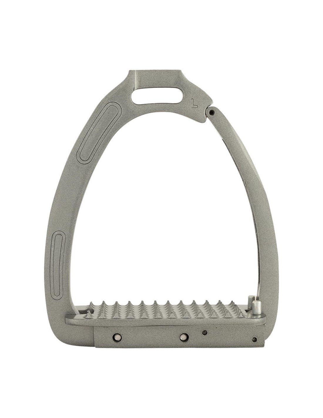 This stirrup is made of galvanized aluminium with a powder coating and is reinforced with stainless steel on the inside for extra strength. The stirrups feature a magnetic safety mechanism. The weight of the rider will open the magnetic clasp in the event of a fall. This way, the safety mechanism helps to prevent the foot from getting caught in the stirrup. As soon as the foot has come free, the clasp will automatically spring back into position. The slightly curved opening for the stirrup leather ensures a good stirrup position, which will keep the foot in the correct position. As a result, this provides more stability and improves leg position.