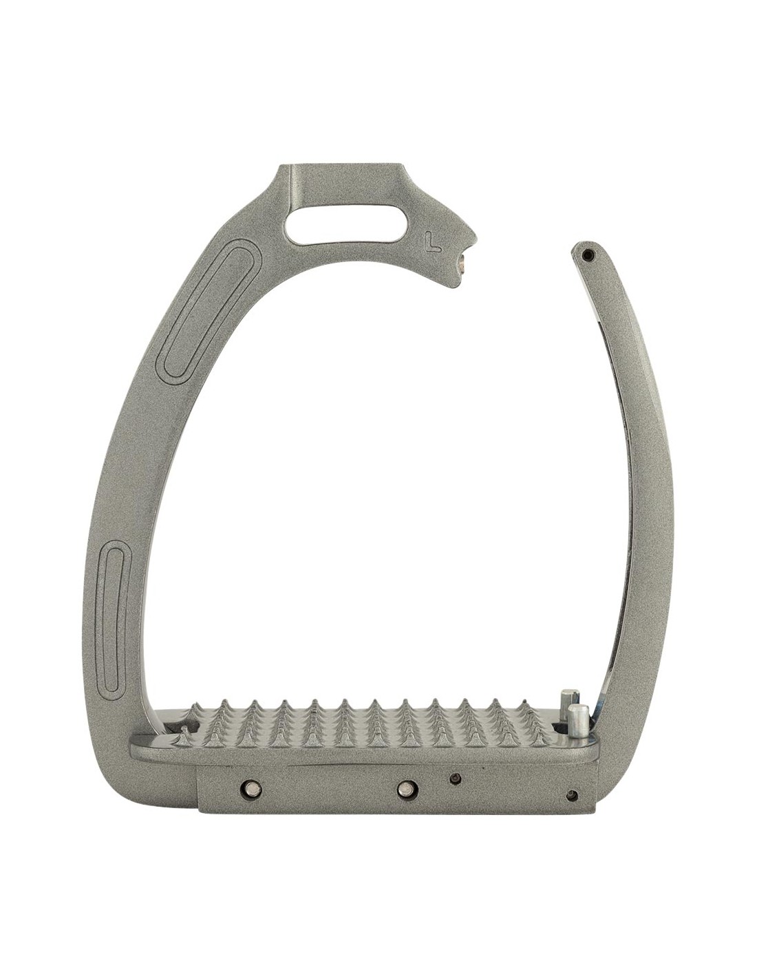 This stirrup is made of galvanized aluminium with a powder coating and is reinforced with stainless steel on the inside for extra strength. The stirrups feature a magnetic safety mechanism. The weight of the rider will open the magnetic clasp in the event of a fall. This way, the safety mechanism helps to prevent the foot from getting caught in the stirrup. As soon as the foot has come free, the clasp will automatically spring back into position. The slightly curved opening for the stirrup leather ensures a good stirrup position, which will keep the foot in the correct position. As a result, this provides more stability and improves leg position.