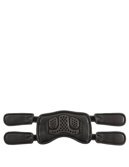 Leather, anatomically formed dressage girth with a wide, fixed belly guard and elastic billets. The broad belly guard and distance between the billets ensure a decreased pressure on the sternum and improve the stability of the saddle. The inside of the girth contains gel for more comfort. This girth is not recommended for horses with a big belly.