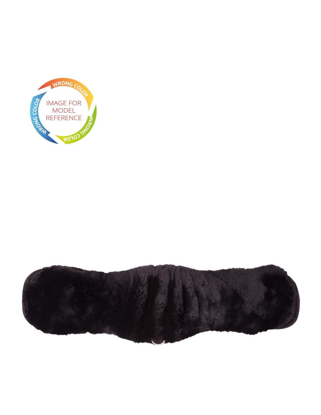 This anatomically shaped dressage girth in quilted polycotton has a soft lining made of natural sheepskin. This comfortable lining distributes and reduces the pressure of the girth and also prevents pressure sores and overheating. Medically tanned sheepskins are hygienic, sweat resistant and inhospitable to bacteria. Especially suitable for horses with sensitive skin. The lining is fully detachable using four strong Velcro fastenings and elastic straps on both sides. This allows the lining to be washed separately from the girth. The girth features stainless steel roller buckles with elastic on one side, making it easier to girth the horse. It also keeps the saddle sitting straight and correctly on the horse. The girth features two centre D-rings for attaching training aids. The anatomic shape of the girth gives the horse maximum freedom of movement.