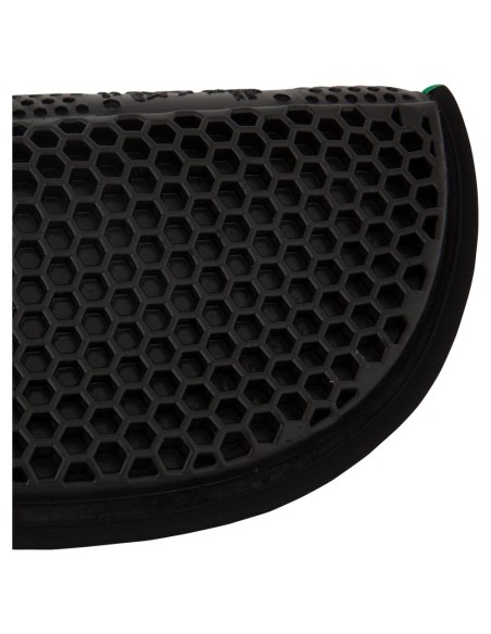 This anatomically shaped gel pad has a soft gel honeycomb profile on the top and a microfibre lining on the underside. The recess at the front avoids pressure on the withers. The soft gel honeycomb profile absorbs shocks and stabilises the saddle. BR therapeutic soft gel has excellent anti-slip properties, does not support bacterial growth and is non-toxic. The pad can therefore be used directly on the horse’s back, or between saddle and saddle cloth. BR soft gel pads fit under all saddles and are machine washable at 30°C.