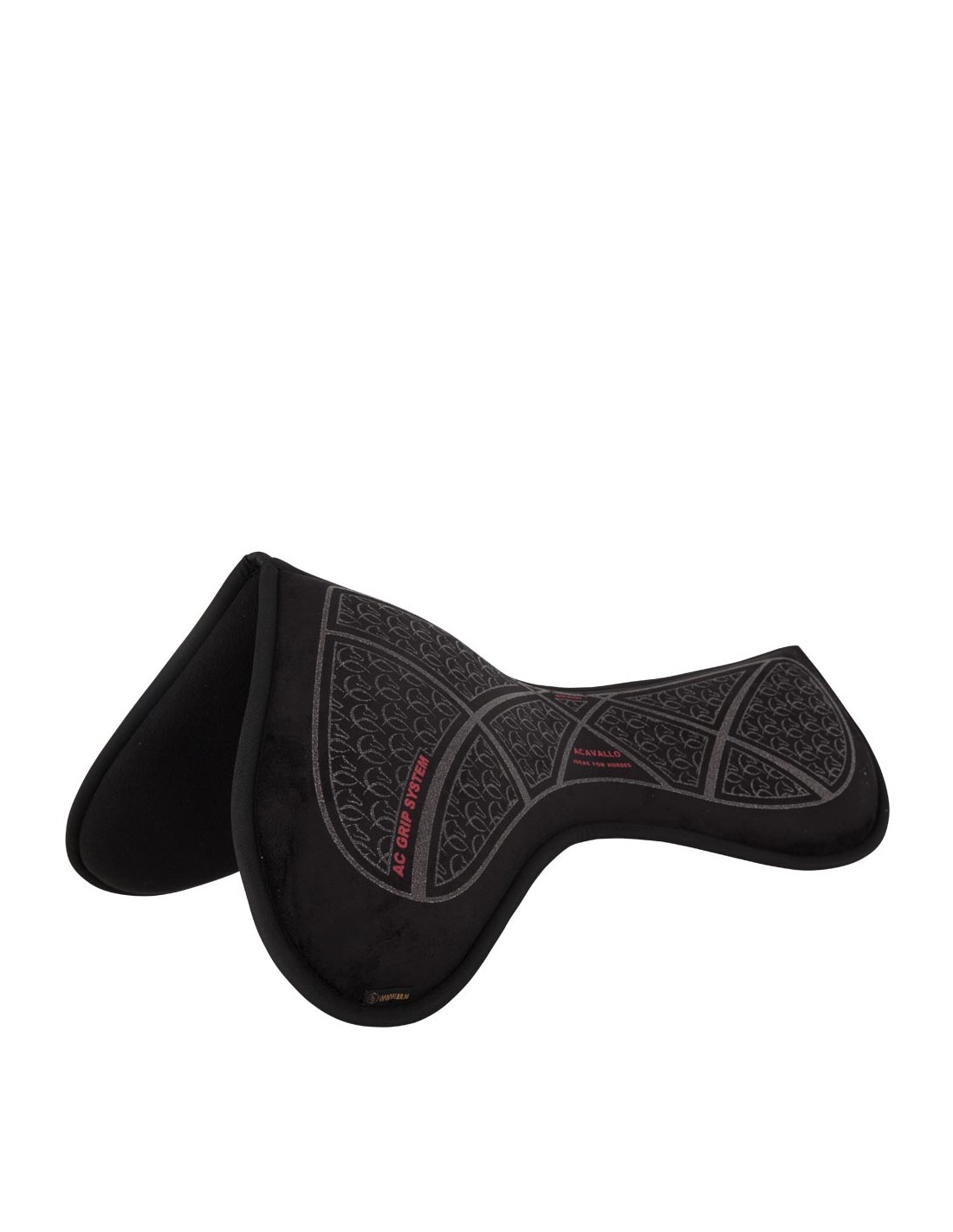 This anatomically shaped microfibre half pad features an anti-slip print on top to ensure a stable saddle position. The pad is filled with memory foam. This material distributes the weight of saddle and rider very evenly across the horse's back. This reduces the risk of pressure on the spine and withers. Memory foam also provides excellent shock absorption. The material reacts to body heat, adapting perfectly to the contours of the horse’s back, which prevents rubbing. The breathable pad fits under all saddles and can be used directly on the horse’s back or between saddle and saddle pad. Machine washable at 30°C.