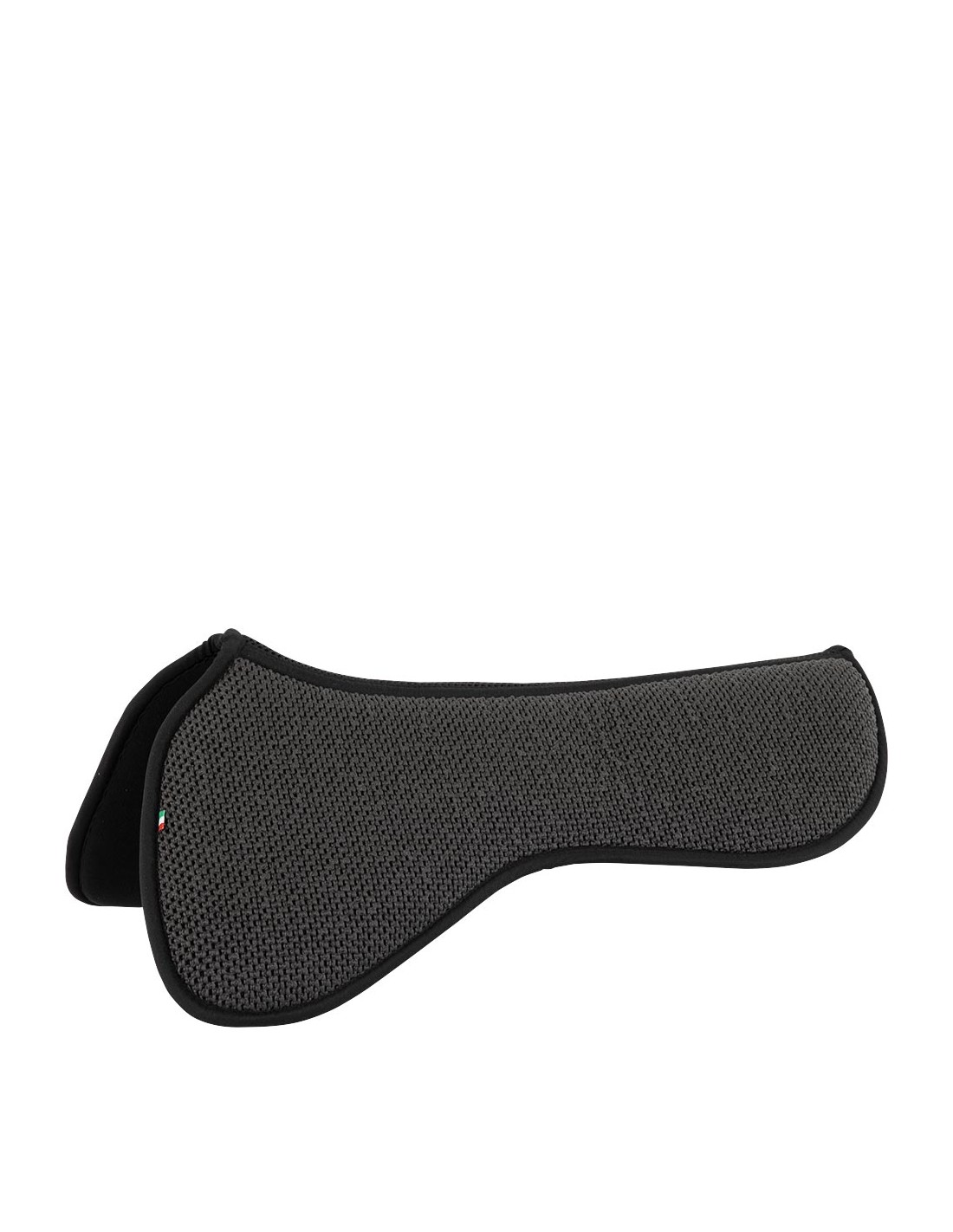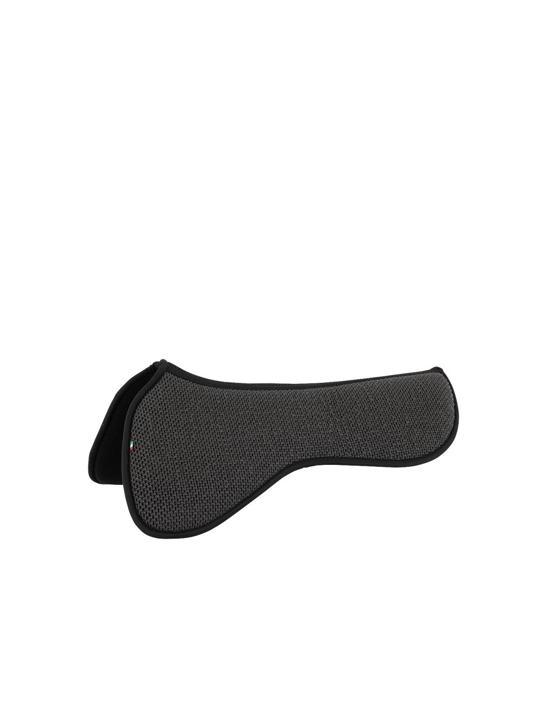 The memory foam distributes the weight of saddle and rider very evenly across the horse's back. This reduces the risk of pressure on the spine and withers. Memory foam provides excellent shock-absorption. The material reacts to body heat and as result, it adapts perfectly to the contours of the horse’s back and prevents rubbing. The half pad contains breathable material (3D spacer) at the spine area. It relieves pressure on the spine and increases the freedom of movement.