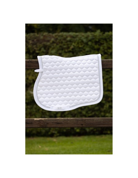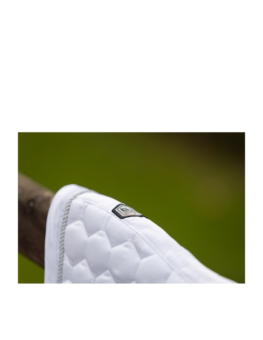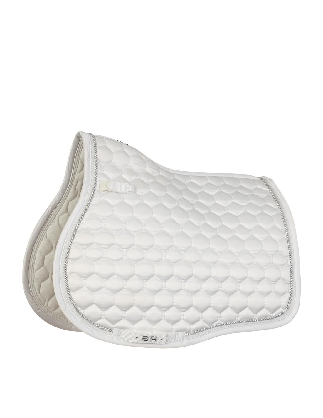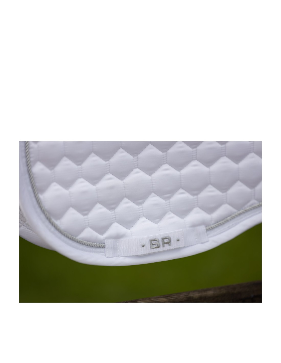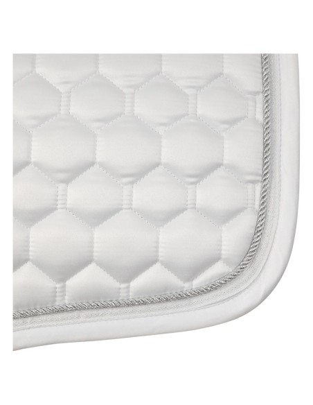 The saddle pad has retaining straps and girth loops with Velcro. In addition, the saddle pad stands out due to the stylish honeycomb profile, the glitter piping with herringbone profile and the silver cord piping.