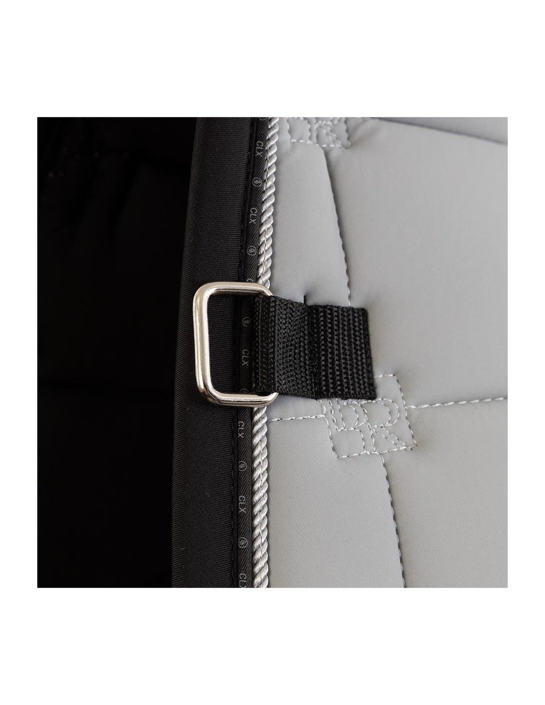 The stylish CLX saddle pad has a square quilted design with BR logo stitching for a unique look and finished with two subtle pipings. The saddle is equipped with adjustable girth loops and retaining straps with Velcro and has an extra reinforcement of synthetic leather at the girth loop.