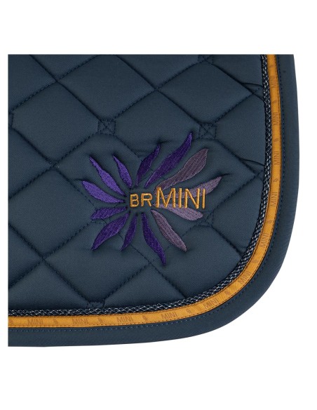 This anatomically shaped saddle pad is made of fine twill and offers great comfort to the horse. The moisture-wicking and breathable lining of Cool Plus ensures that your horse's back stays as dry as possible. The polypadding combined with foam provides good shock absorption and a pleasant feeling. The saddle pad has girth loops and short retaining straps with Velcro. The finish with a colourful contrast piping, a cord piping with silver glitter and the BR-Mini artwork creates a playful look.