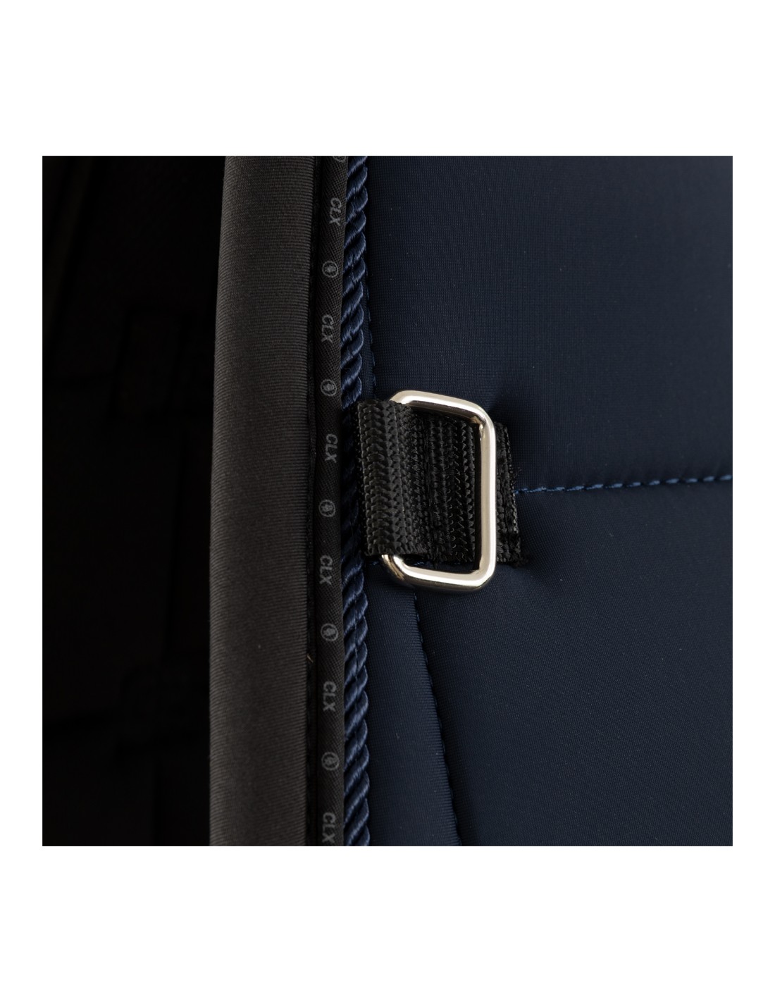 The stylish CLX saddle pad has a square quilted design with BR logo stitching for a unique look and finished with two subtle pipings. The saddle is equipped with adjustable girth loops and retaining straps with Velcro and has an extra reinforcement of synthetic leather at the girth loop.