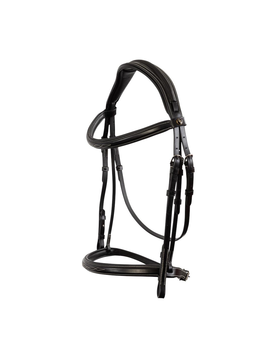 BR bridle Berrington is anatomically shaped and softly padded at the headpiece, browband and noseband to provide your horse with as much comfort as possible. The headpiece is equipped with extra padding (6 mm) on the side for better pressure distribution. In addition, the belt to which the noseband is attached runs over the headpiece to distribute the pressure even better over the horse's head.