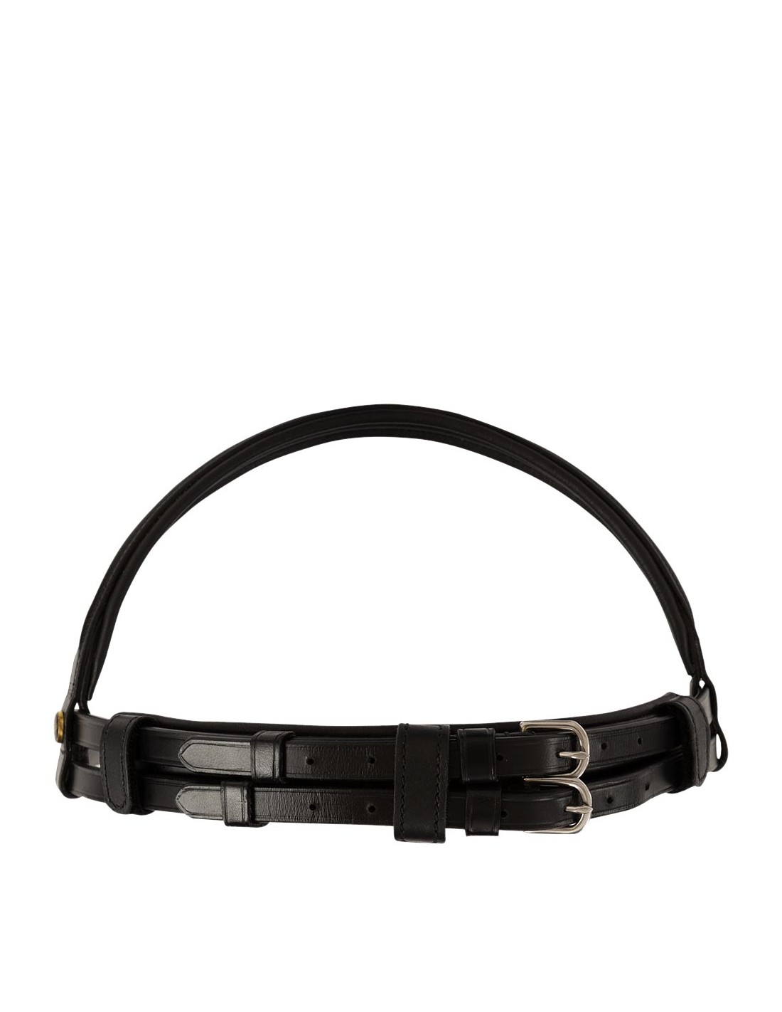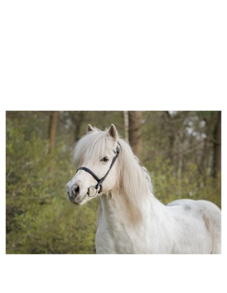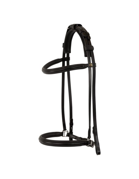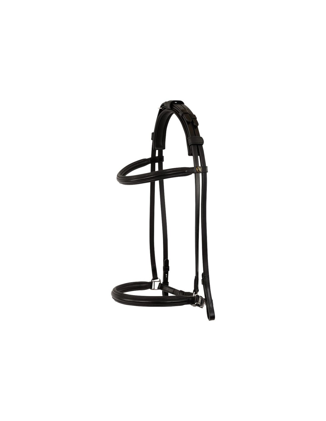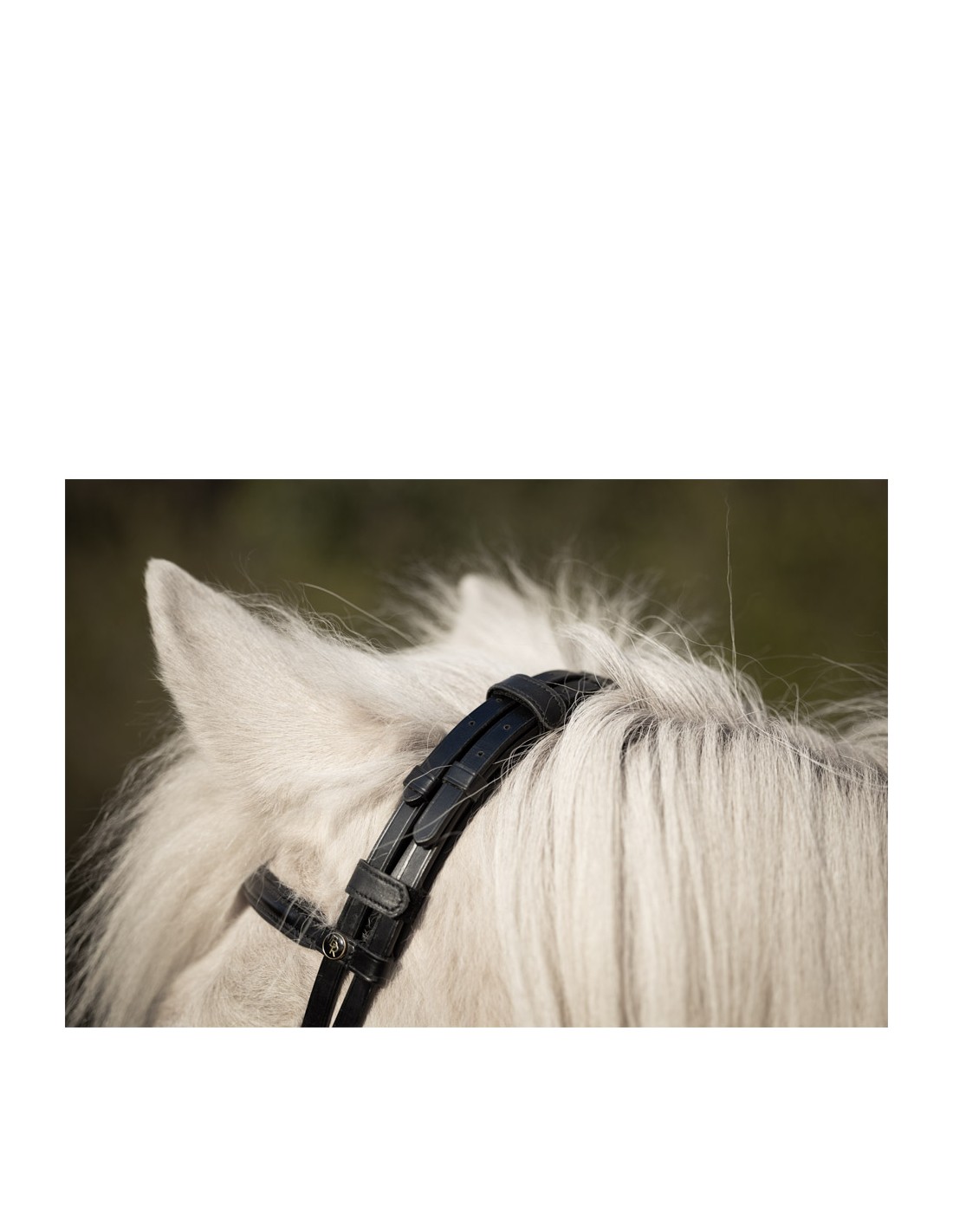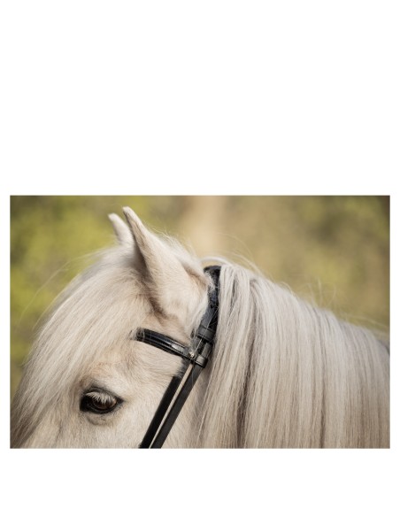 The bridle is made of high quality English leather that is very supple and stays beautiful for a long time. The headpiece is extra softly lined for a pleasant feeling on the horse's head. The straight browband and noseband are both softly padded and round raised. In addition, the bridle is equipped with a soft chin pad and sturdy buckles with a chrome finish.