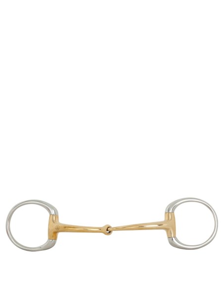 This high-quality single jointed eggbutt bradoon is made of solid Cuprigan with stainless steel rings. Cuprigan is an alloy consisting of 89% copper, 7% aluminium, 3% iron and 1% zinc. The oxidation process of the material gives a pleasant smell and taste. The anatomical design of the bit follows the shape of the horse’s mouth, which allows for a gentle and even pressure distribution. The design, combined with the unique properties of Cuprigan, encourages the chewing process and saliva production, which allows for a pleasant connection with the sensitive horse’s mouth. The bit applies normal pressure on the mouth. Mouthpiece thickness 12 mm, ring size 50 mm.