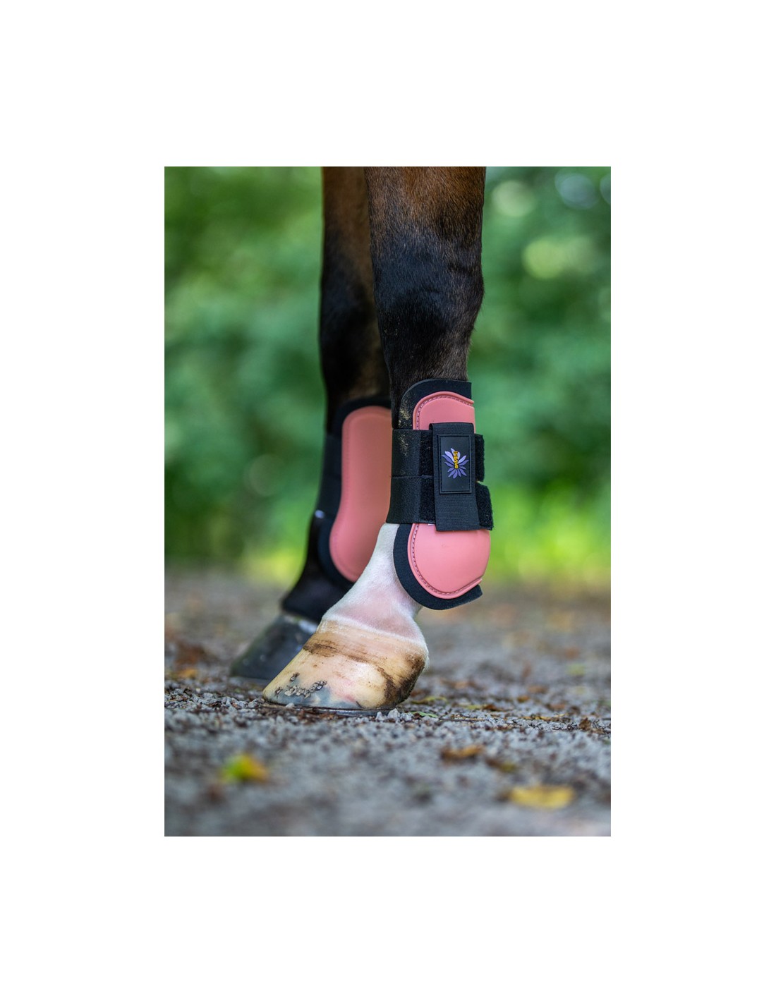 This tendon boot has been specially developed for the smallest horse breeds and ponies. The hard outer shell protects the tendons from blows. The neoprene lining (6mm) absorbs the shock and feels pleasant on the horse's skin. The tendon boot closes with sturdy, elastic Velcro closures and the double-layered Velcro keeps the protector tight. The colourful artwork on the Velcro gives the tendon boot an extra playful effect.