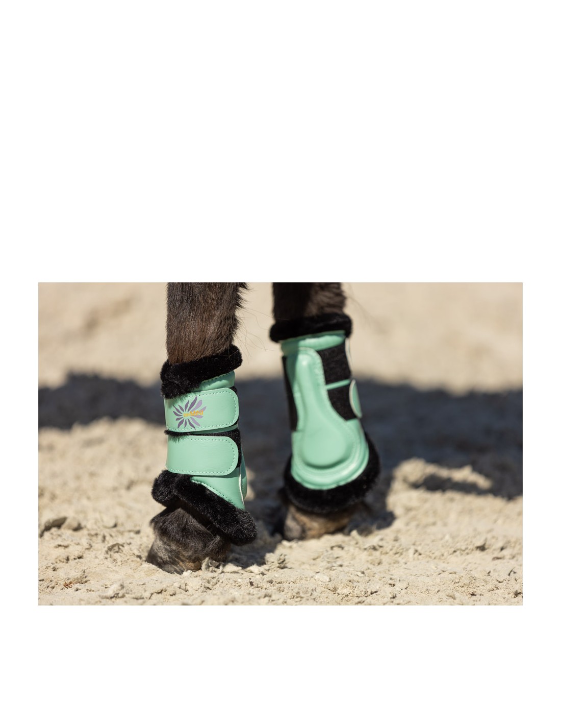 This Majestic horse boot has been specially developed for the smallest horse breeds and ponies. The synthetic leather exterior is of high quality and lasts a long time. The exterior protects the horse leg from external trauma, with the strike pad providing additional protection. The wonderfully soft faux fur lining ensures optimal pressure distribution, prevents chafing, and absorbs shocks. The sturdy, elastic Velcro fasteners ensure that the horse boots remain firmly in place. The colourful artwork on the Velcro gives the tendon boot an extra playful effect.