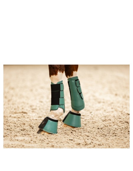 Get to know the CLX Collection. Create new sets with high-quality clothing and horsewear in beautiful, stylish colours. The over reach boots are covered with smooth, synthetic leather for an elegant look. The inside is lined with breathable, shock-absorbing neoprene (5mm) and the edge is also covered with soft neoprene to ensure a comfortable feel for the horse's skin. Thanks to the sturdy double-sided velcro, the over reach boot stays firmly in place.